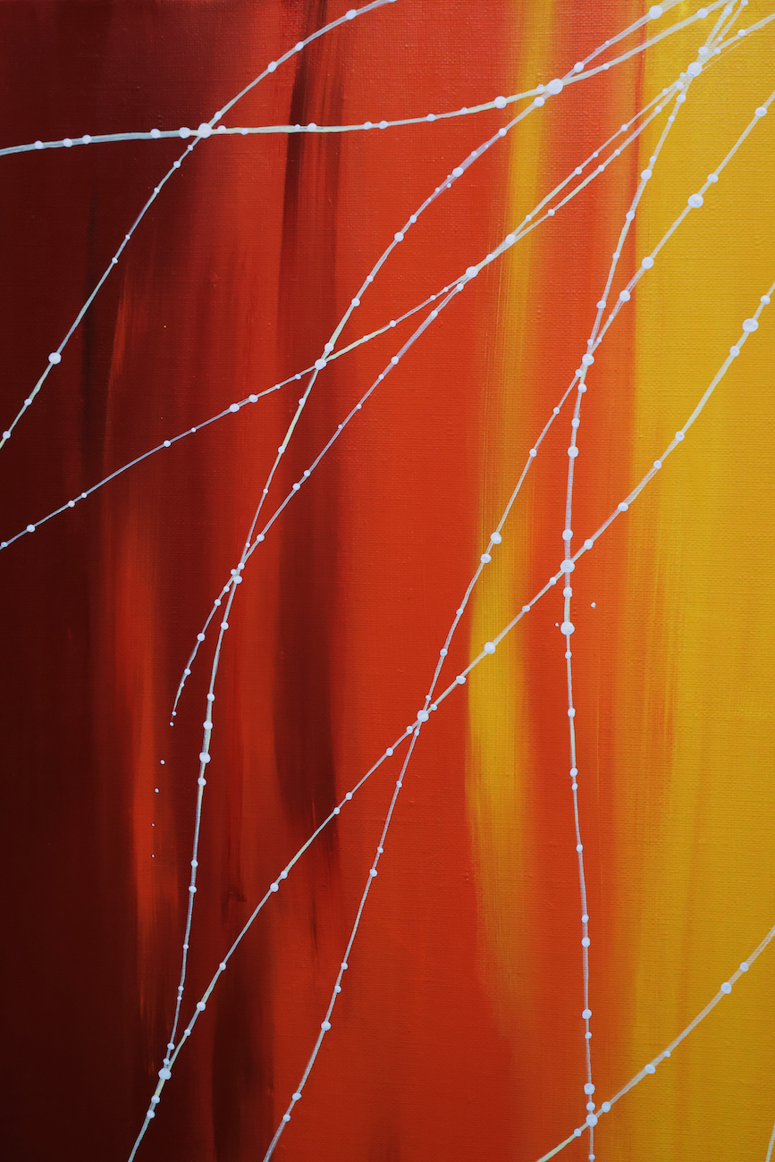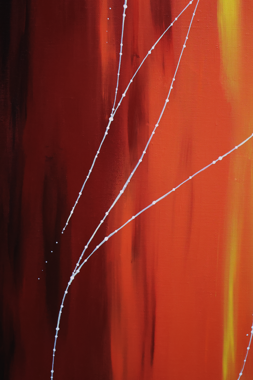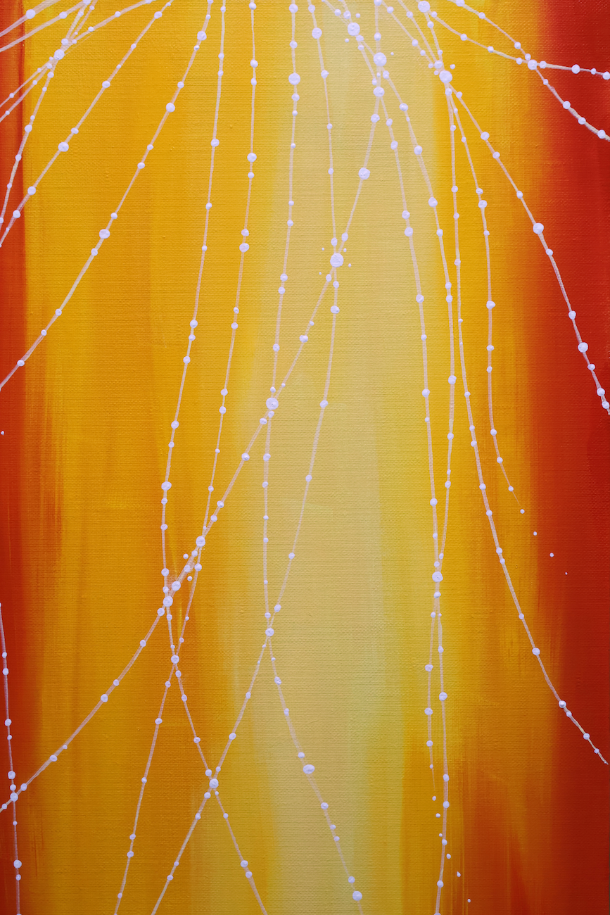 The yellow pillar in the background carries a symbolic meaning that spans across both works in the series. Depicted as moving from right to left—like scenery seen from a moving train—it evokes the passage of time.