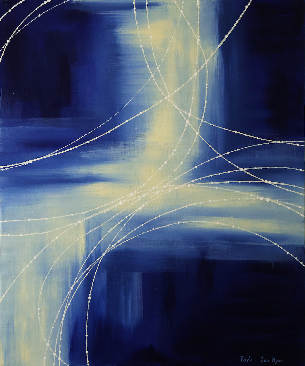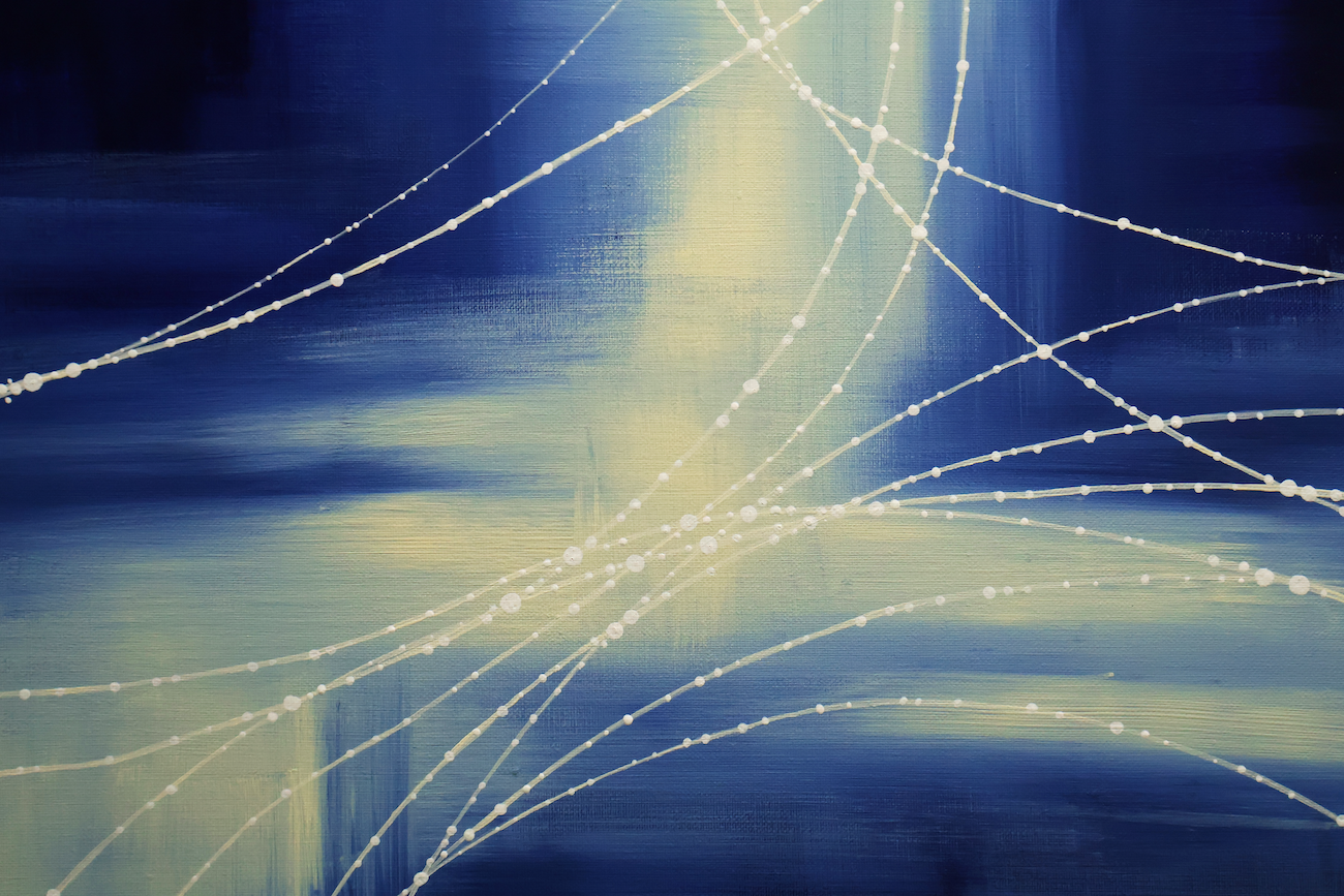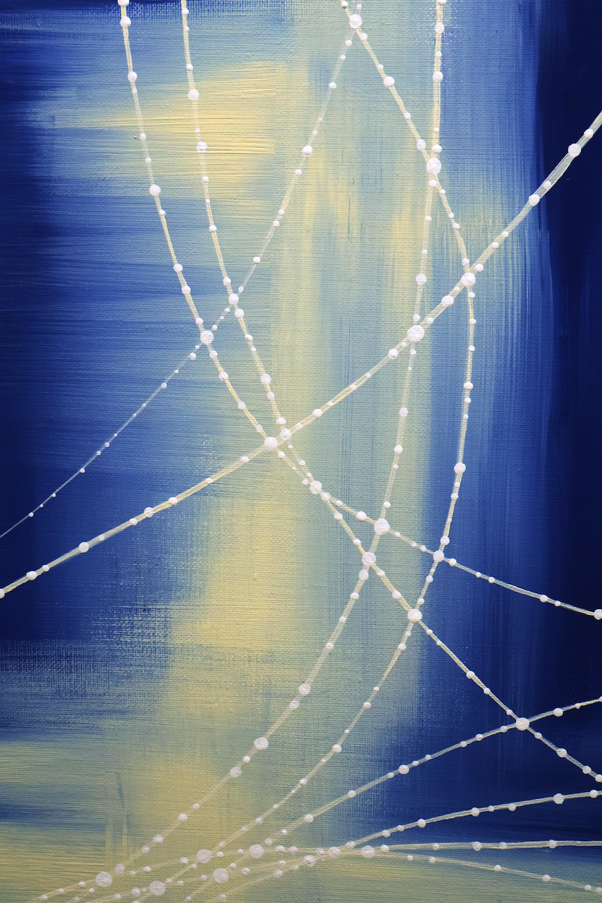 This piece visualizes how tangled threads of thought begin to unravel and seek resolution through the presence of light seeping in through a gap.